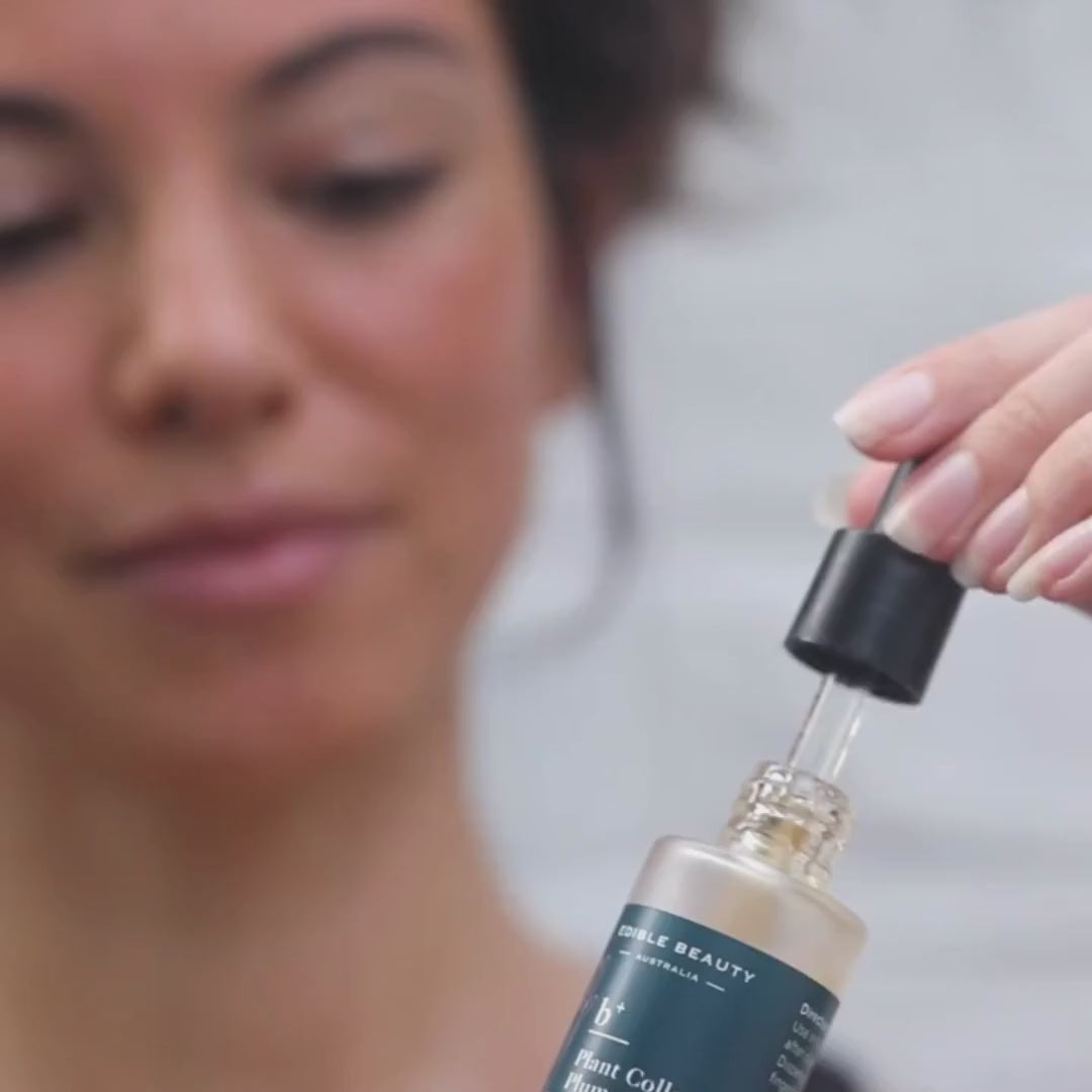 這種植物性膠原蛋白精華液經過精心配製,可以明顯豐滿和緊緻肌膚,撫平細紋,明顯提升肌膚,使膚色更加光滑、緊緻和有光澤。精華液採用野生植物中產生的獨特一型膠原蛋白片段,經臨床證明,可提供爆發式補水,明顯改善皺紋,提升和緊緻膚色。這種植物膠原蛋白配方結合了海帶和富含抗氧化劑的澳洲戴維森李和茴香桃木,可以深層補充水分,明顯提亮和提升肌膚,展現年輕的光澤。